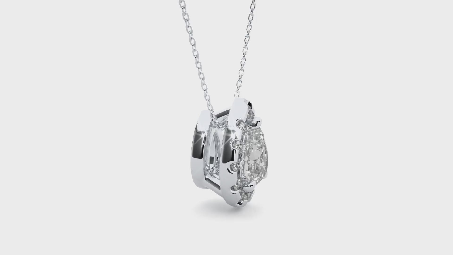 18k Solid Gold & Lab Diamond Contemporary Necklace with Pear cut Solitaire Pendant in Halo Setting.